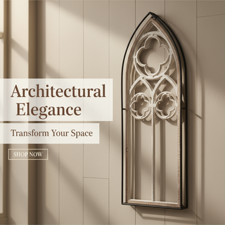 Add some dimension to your space! Cathedral Arch Wood Wall Decor features an arched matte black metal wire frame that holds a fitted, flat brown arch with a whitewash finish. Inside the wood piece are two arches and three clover shapes with four round sides. Hang this cathedral style arch where it can be celebrated!