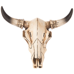 Dramatically enliven wall decor with Cow Skull Wall Decor. This gorgeous resin piece is an artificial replica of a cow's skull that will add a quirky western approach to your home decor theme. Hang it on the wall of your collector's room, and bask in the ambiance of your new decor piece!
