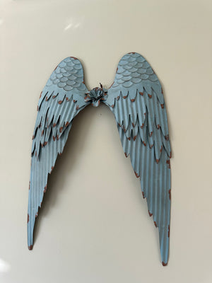 - Large Blue Angel Wings Metal Wall Décor. Eye catching piece of Art
