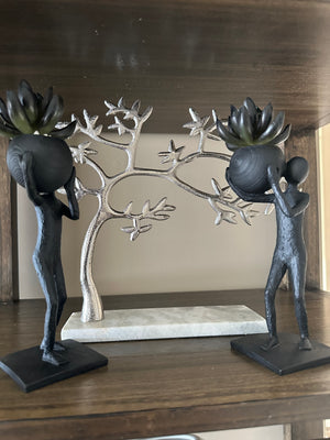 - Black Figurine Holding Potted Succulent. Set of TWO