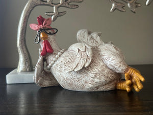 Hen With Glasses & Pearls farmhouse décor, . Great gift