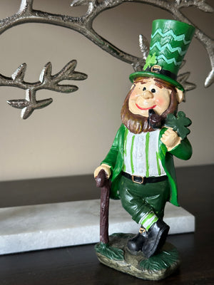 - Lucky leprechaun green Resin figurine with Irish Hat shamrock, San Patrick statue