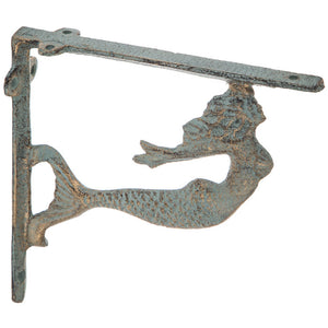 Give your home a dazzling under-the-sea look with Mermaid Metal Corner Bracket! Constructed of cast iron, this darling creation features a patina and gold mermaid shape that is suspended between two right angled sides. Add the bracket below a shelf, or add it to your home as a purely decorative look!