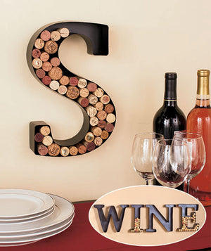 Metal Monogram Wine Cork Holder looks distinctive empty or when filled with tokens from your favorite wines. When you finish a bottle, save the cork and add it to this monogram-shaped frame. Start from the bottom and build your way up. Use a dot of glue on each cork for extra security.