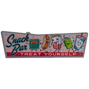 Let's all go to the lobby! Incorporate vintage designs and bright colors to your space with Snack Bar Lenticular Wood Wall Decor. This fun wall piece has a design of animated snacks that dance when you walk past. Perfect for decorating a home theater, this silly sign will encourage good times and tasty treats!